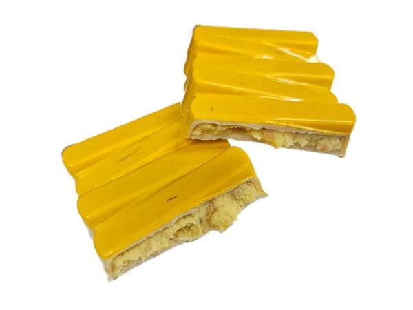 Witte chocoladereep gevuld met een romige frisse citroen creme en kleine stukjes biscuit